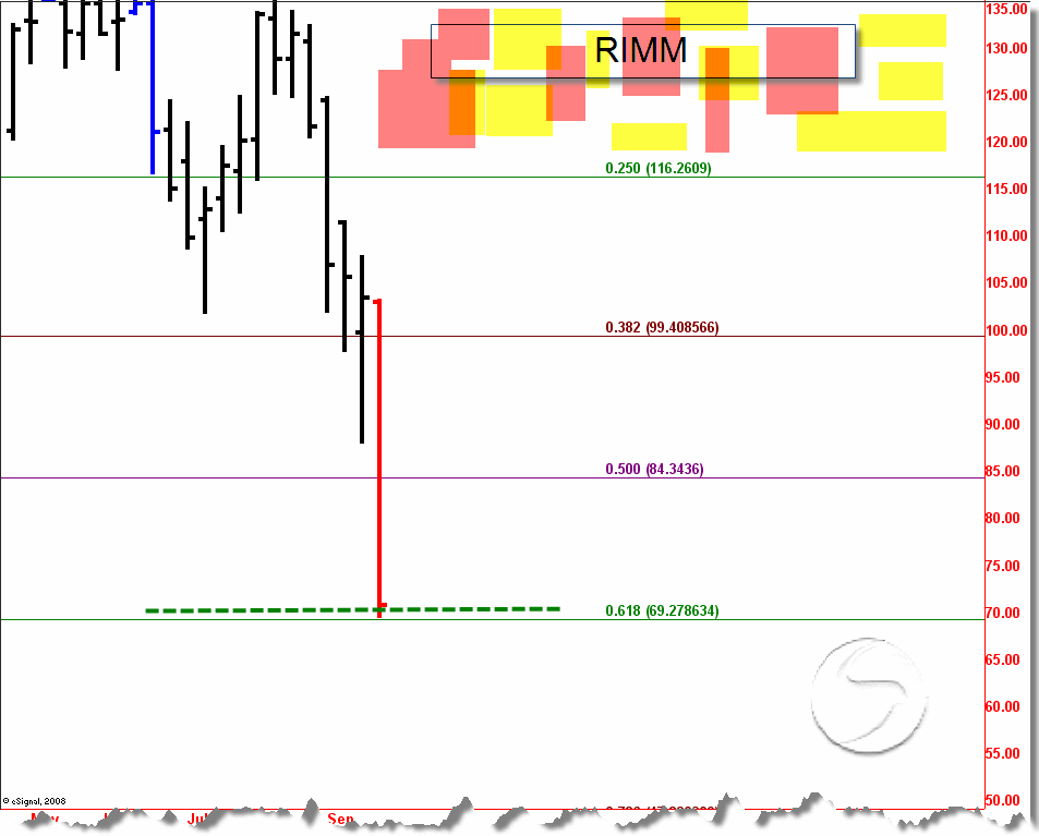 As far as the NASDAQ ($COMPQ) goes, it looks very bearish, but many of these names are stretched way down here. A bounce is in order. Ultimately, I see (RIMM) at 45, but we won’t go straight there. I expect a bounce.