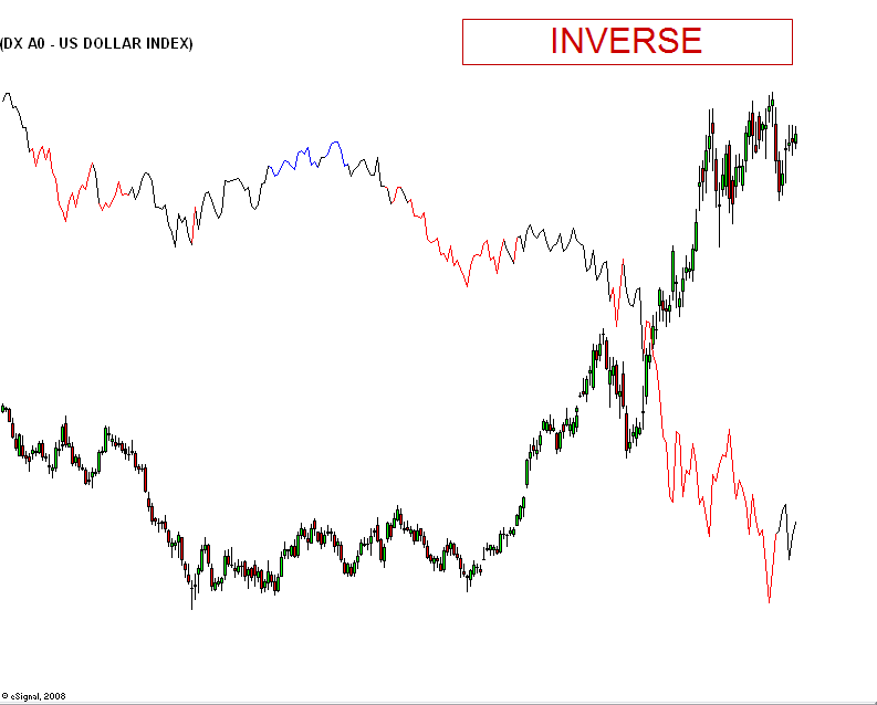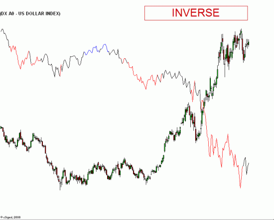 As you can see it is inverse. Dollar up = stocks down.